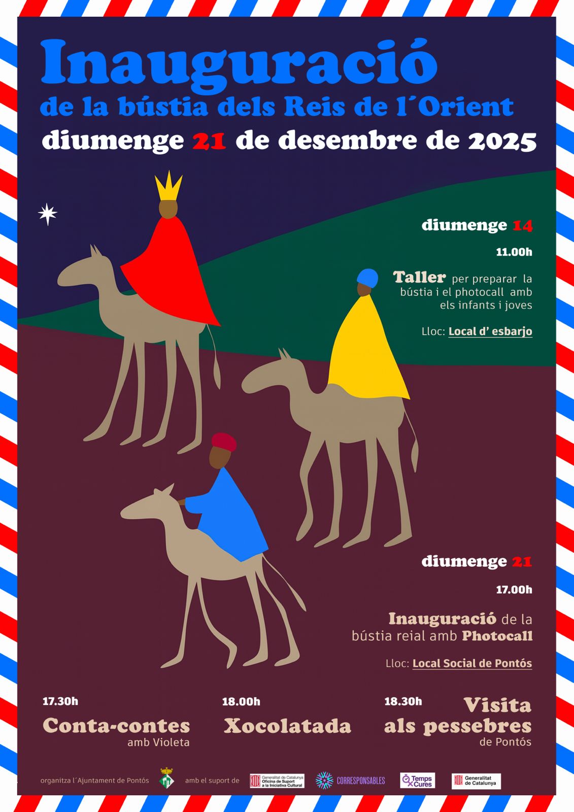 Vine a gaudir de totes les activitats que us hem proposat per a preparar la visita dels Reis de l’Orient a Pontós. Taller per a preparar la bústia i el photocall amb els infants i joves Diumenge 14 de desembre a les 11 hores Local d’Esbarjo Inauguració de la bústia reial Diumenge 21 de desembre […]